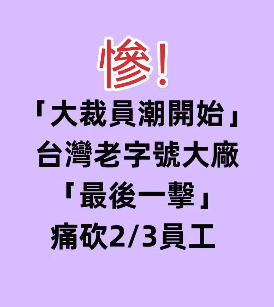 慘!「大裁員潮開始」台灣老字號大廠「最後一擊」痛砍2/3員工!
