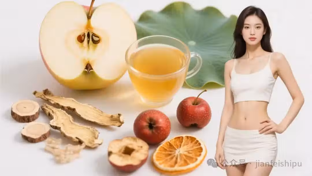 配方:蘋果半個、黃芪6克、山楂8克、荷葉3克、陳皮4克