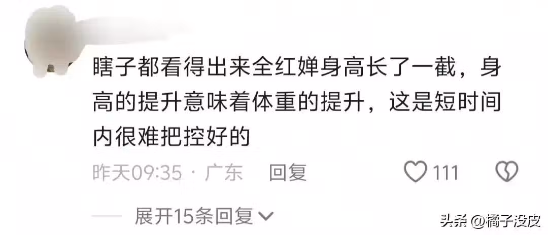 因為全紅嬋身高長了一截,身高變高了,意味著體重就要變重,