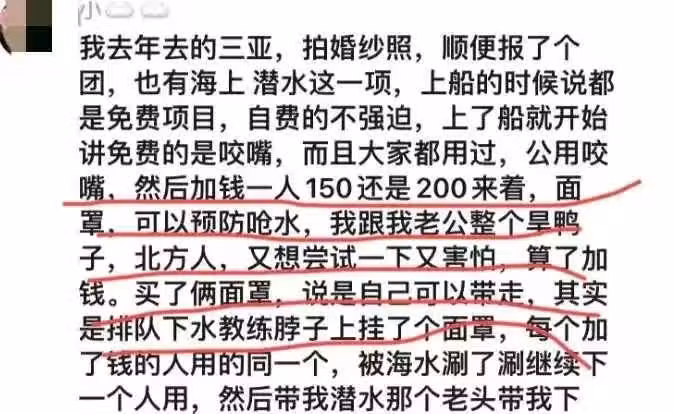 多位遊客揭露了潛水過程中遭遇的種種不法行為,拒絕後的場景,比懸疑電影還要驚悚。