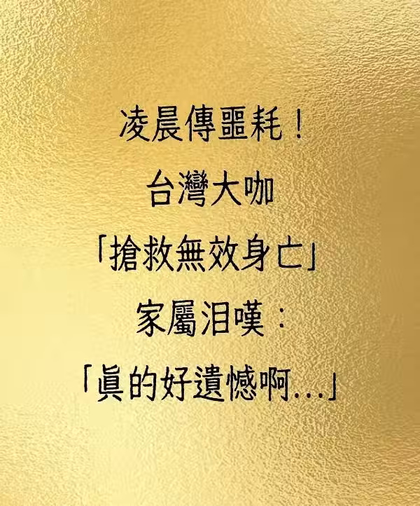 凌晨傳噩耗!台灣大咖「搶救無效身亡」 家屬淚嘆:「真的好遺憾啊.......」