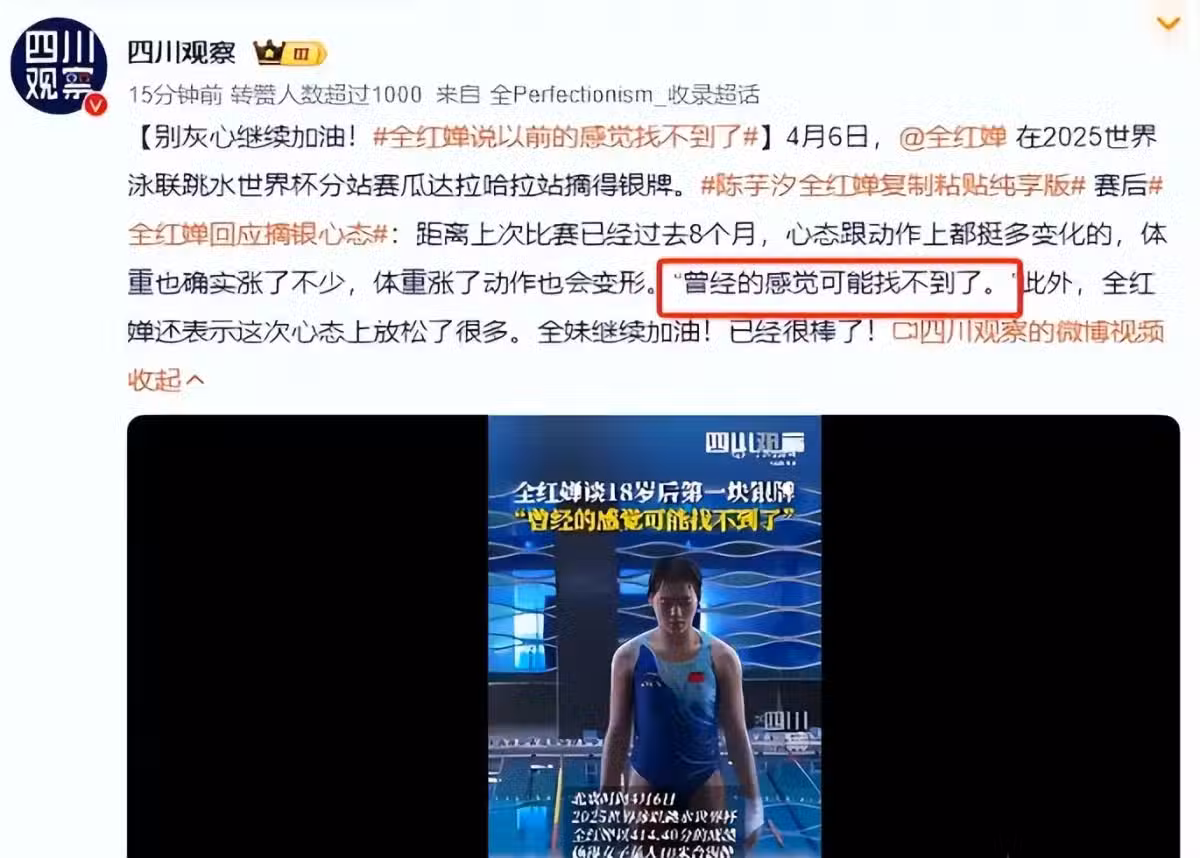 全紅嬋失誤摘銀後續:央視發聲,教練透露內情,本人的回應太殘酷_比賽~~