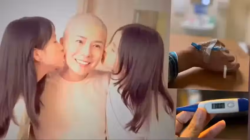 吳文忻癌症末期,兩個女兒哭著為媽媽剃頭,不舍親吻媽媽