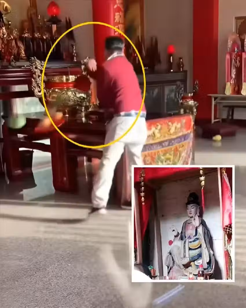 他聲稱花了幾千塊求神保佑卻無回應,憤而認為「佛不靈」,便做出了驚人舉動。