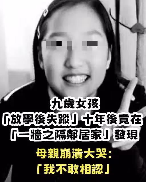 九歲女孩「放學後失蹤」十年後竟在「一牆之隔鄰居家」發現, 母親崩潰大哭不止:「我不敢相認」