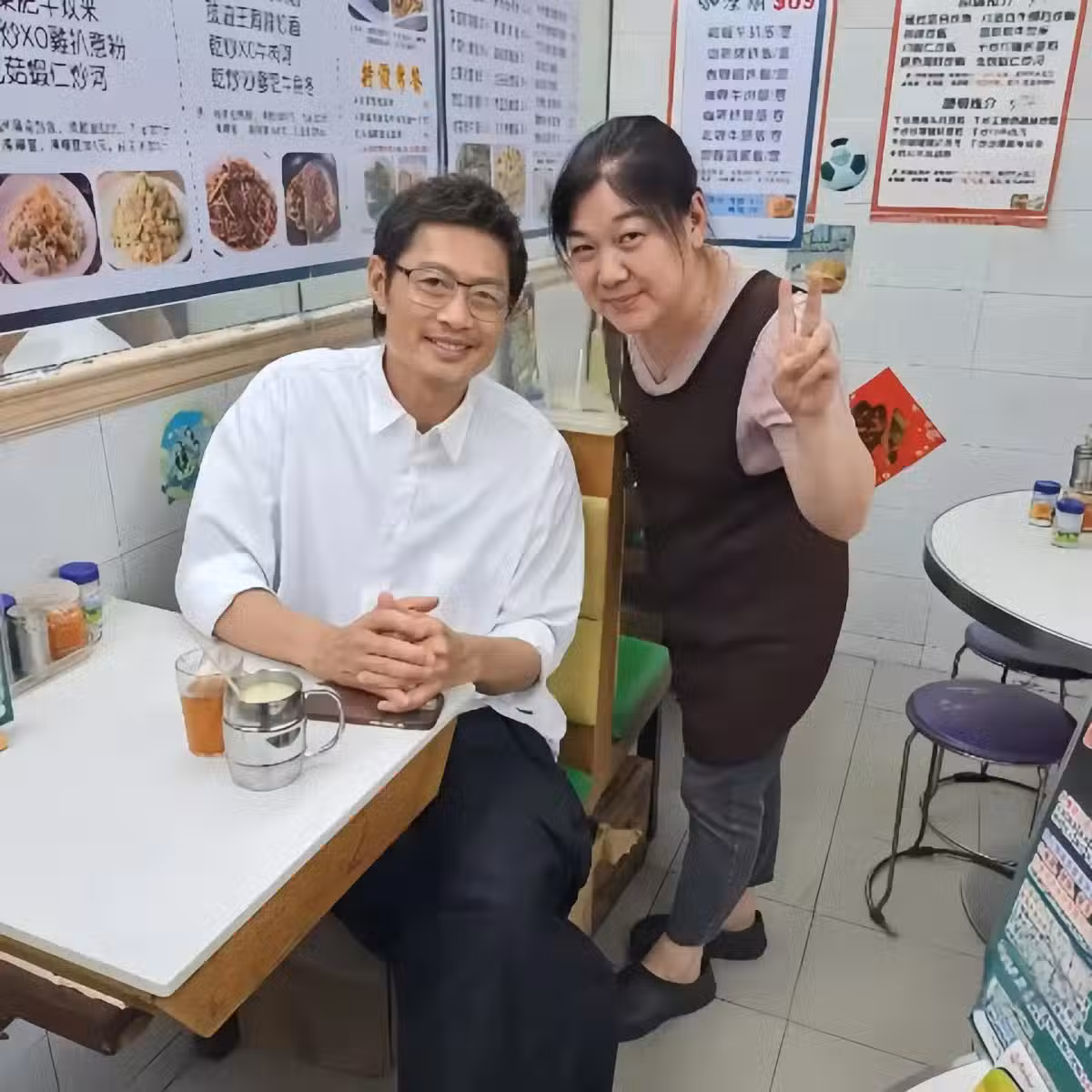 在黃德斌吃飽喝足之後,他離開餐廳前,老闆又請求和他一起在門口拍合照,他也同意了,完全沒有黑臉!---