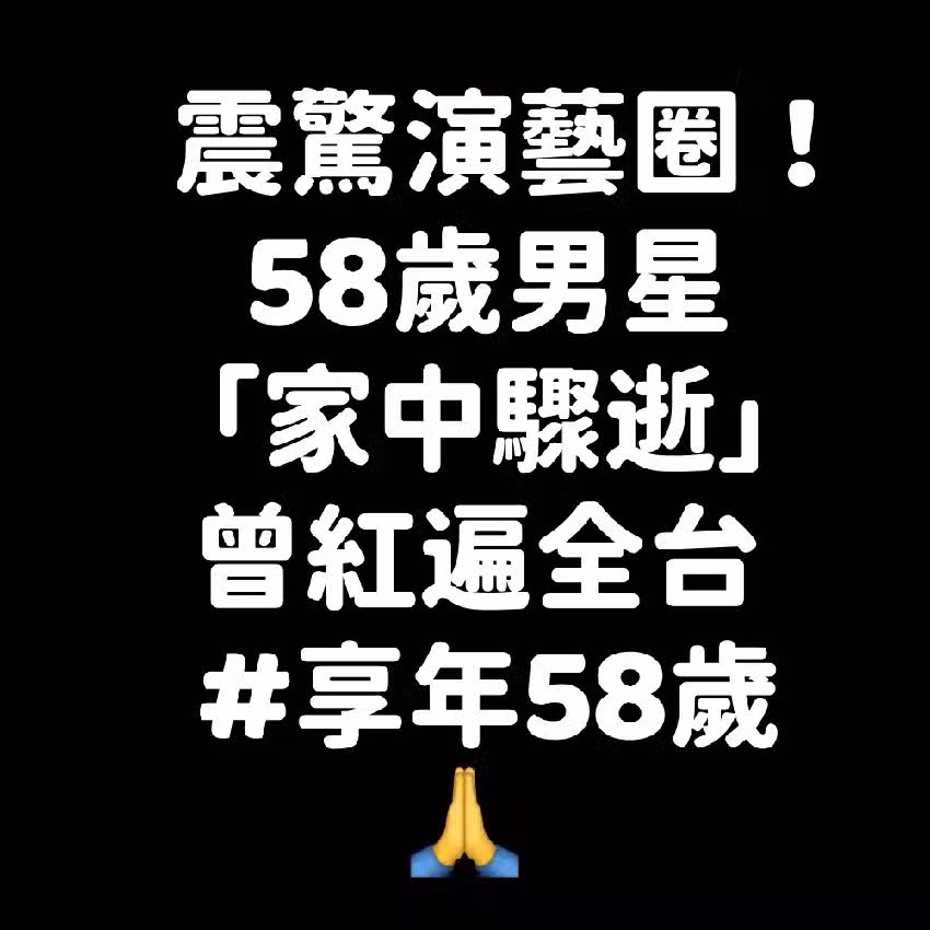 震驚演藝圈!58歲男星「家中驟逝」曾紅遍全台 #享年58歲