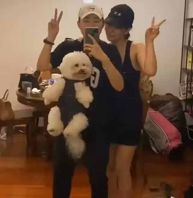 再加上一隻白色泰迪畫面更加的溫馨,除此之外還有兩人的床照。