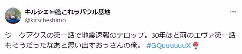《機動戰士Gundam GQuuuuuuX》地震速報震出驚人巧合 30年前的EVA第一集也發生相同的事情
