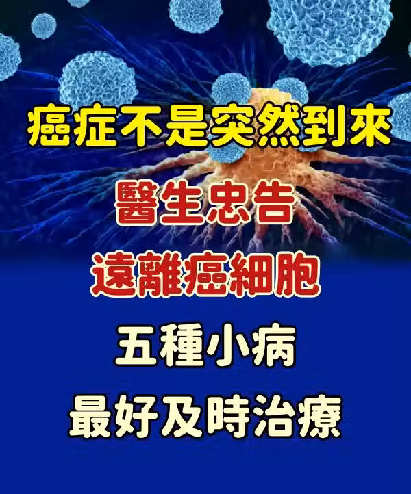癌症不是突然到來,醫生忠告,遠離癌細胞, 五種小病最好及時治療
