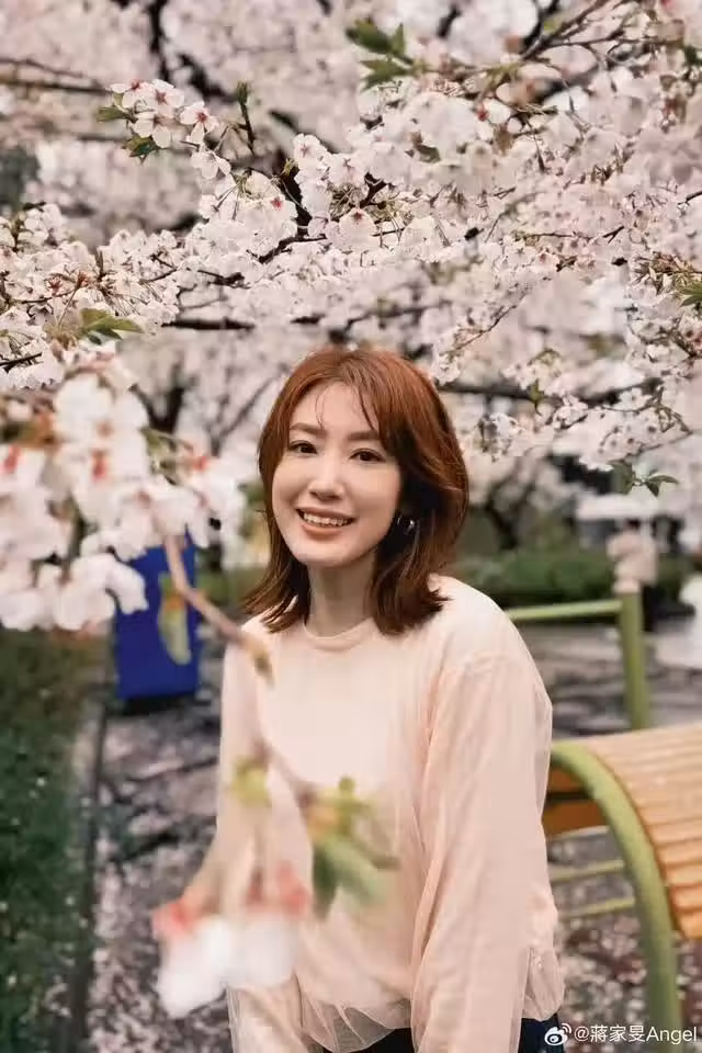 蔣家旻和過往一樣留著一頭披肩發,這髮型看起來很適合她的臉型,站在櫻花樹下,簡直人比花嬌,難怪粉絲們都贊其少女感滿滿。