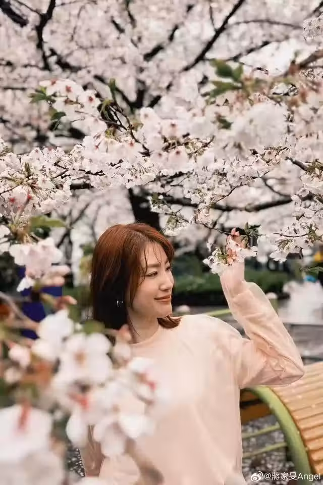 這一組美照很大可能是出自蔣家旻老公之手,這拍照技術想來讓蔣家旻很滿意,出自老公視角的她也是顯得格外的甜美。