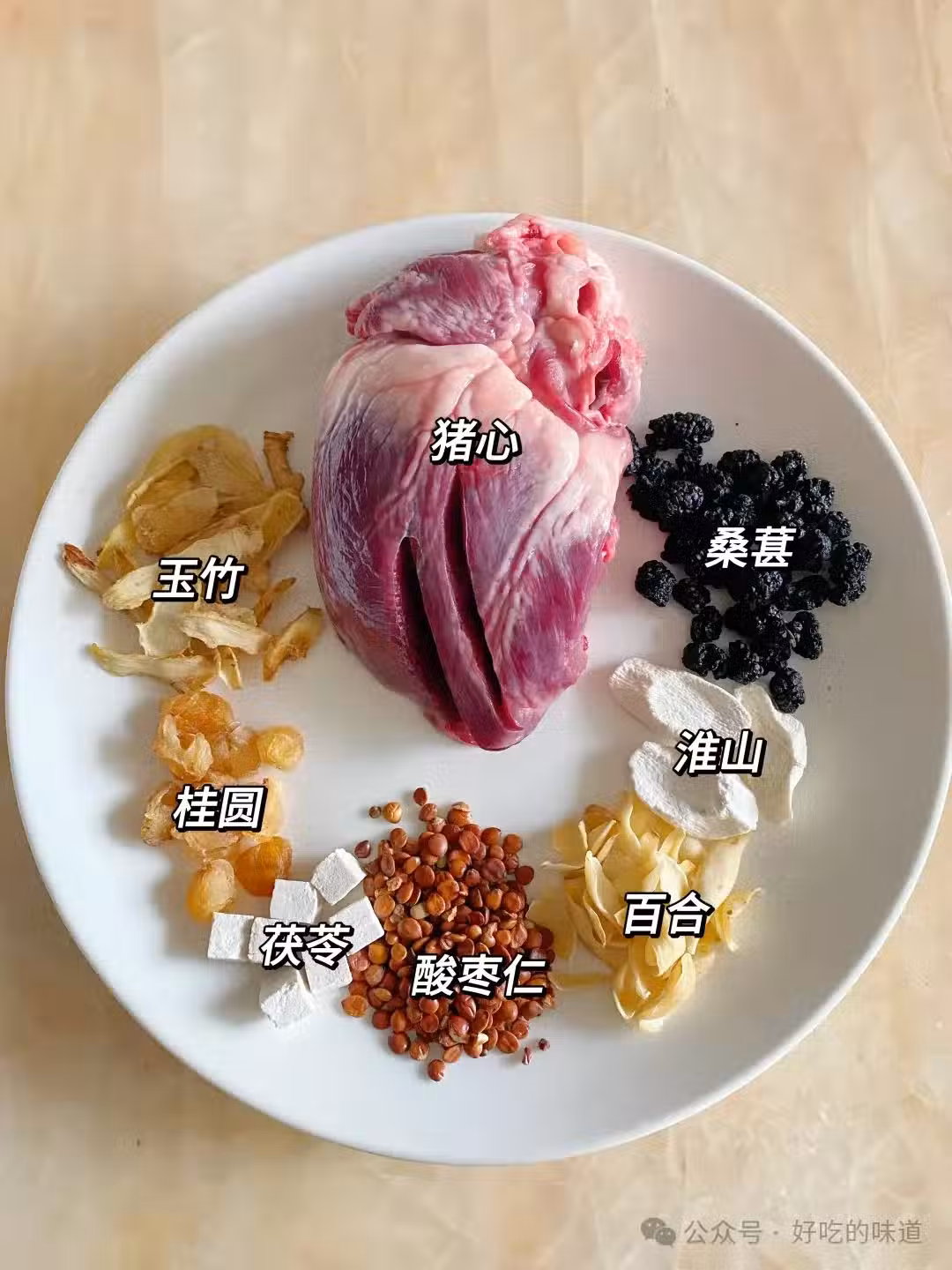1、豬心清洗乾淨焯水,藥材清洗乾淨;