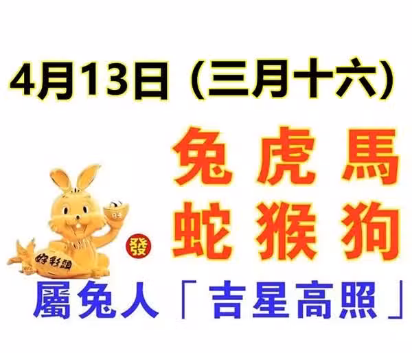4月13日生肖運勢_兔、虎、馬大吉!