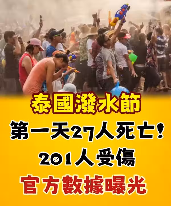 快訊/泰國潑水節第一天27人死亡!201人受傷