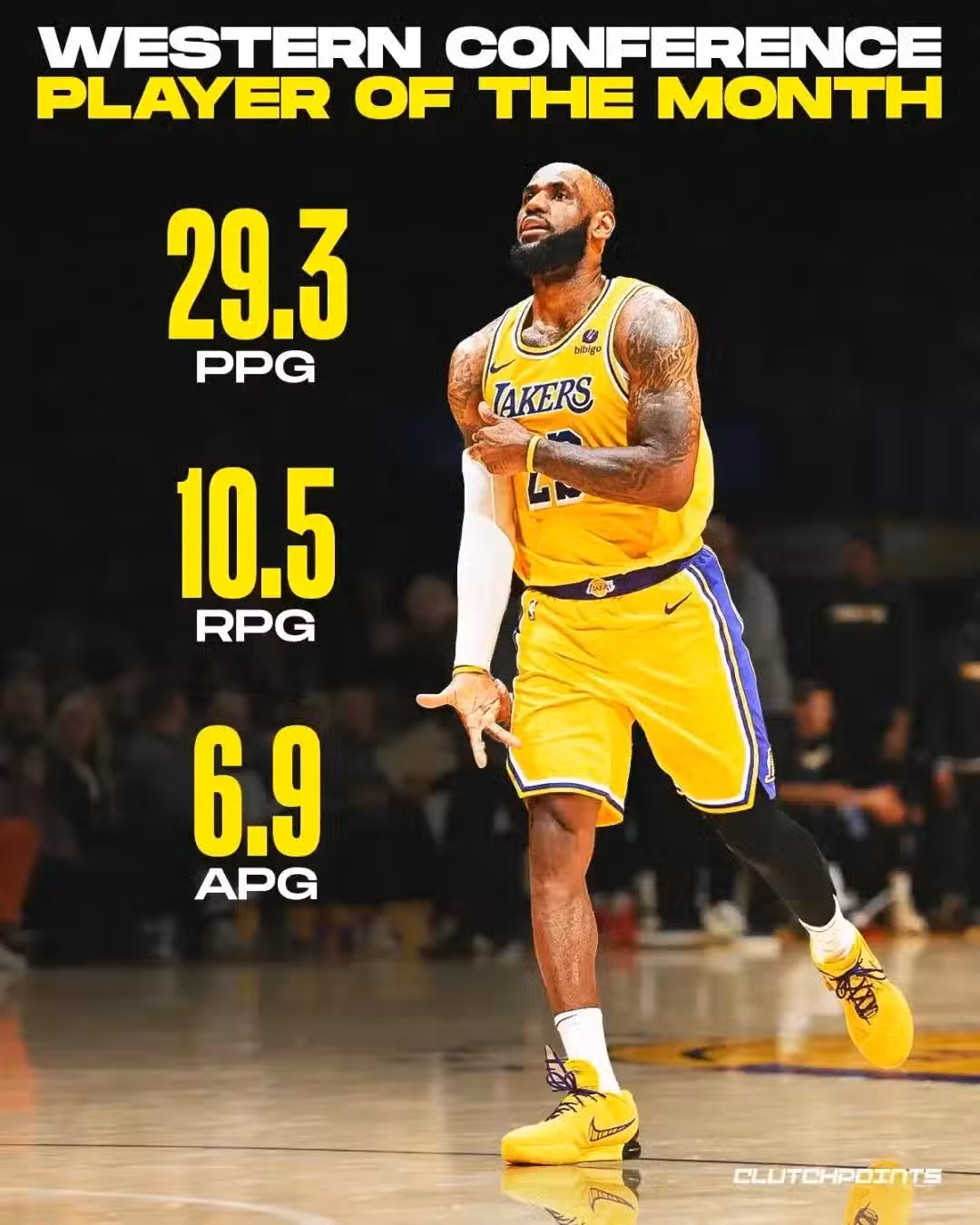 同樣也是依靠二月的強勢表現,詹姆斯成功將自己的賽季場均得分提高到24.9分。