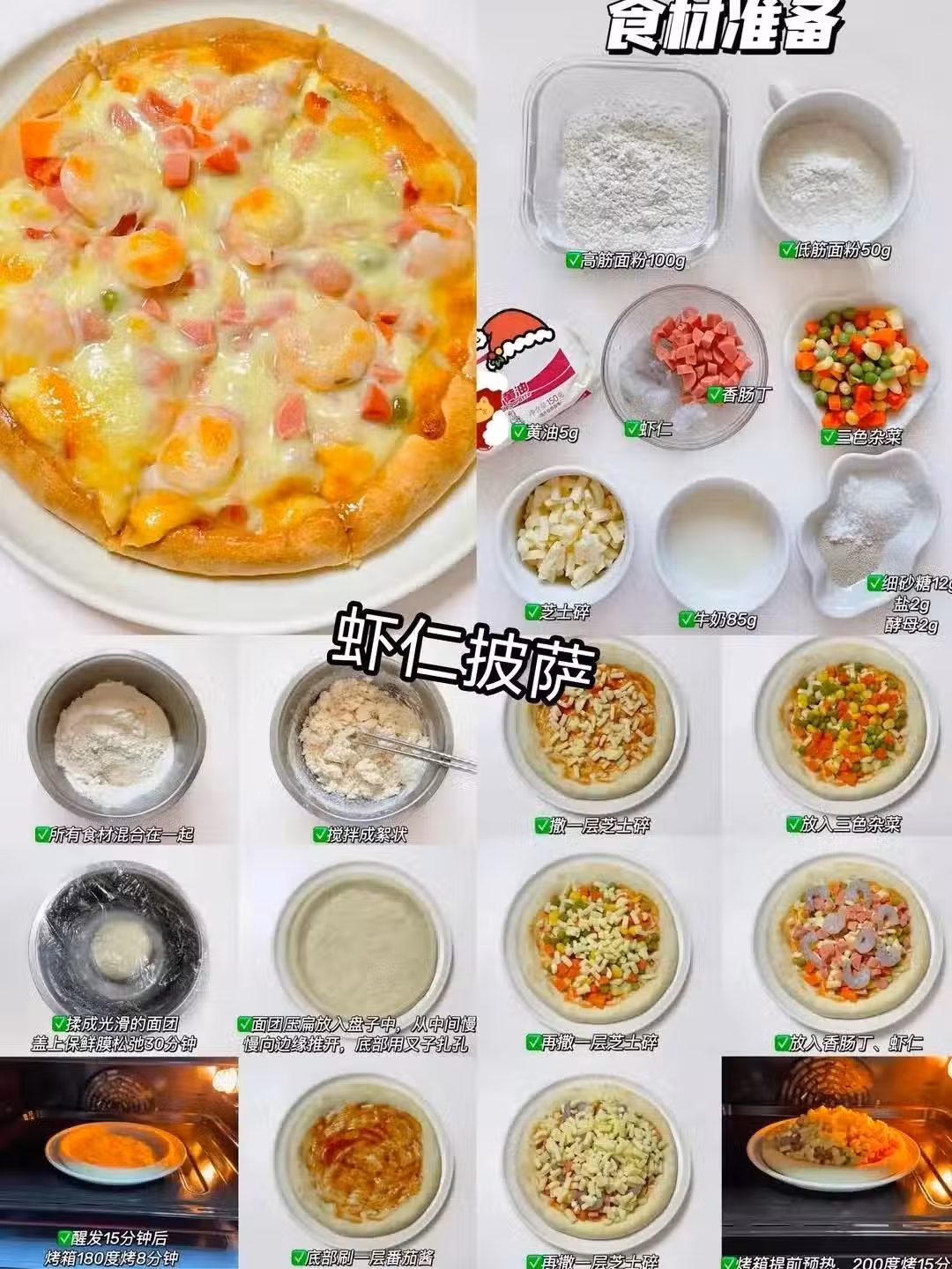 蝦仁披薩:海邊人の尊嚴,青島大蝦申請出戰!活蝦剝殼開背去線,和玉米青豆組成小清新CP。 關鍵秘訣——撒點黑胡椒海鹽,瞬間get愛琴海風味(青島分海)。 菠蘿披薩