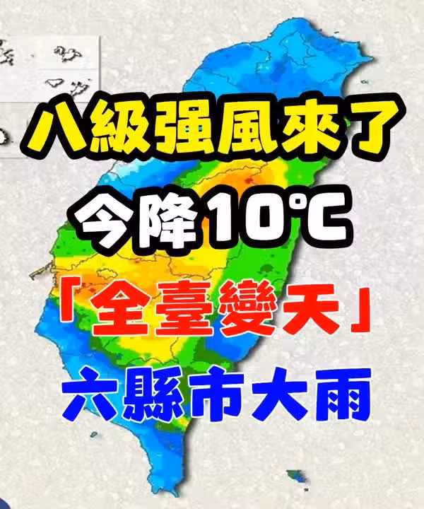 防8級以上強陣風,6縣市大雨特報!中央氣象署表示,今天清晨鋒面通過,及東北季風增強,天氣不穩定,各地都有陣雨或雷雨。