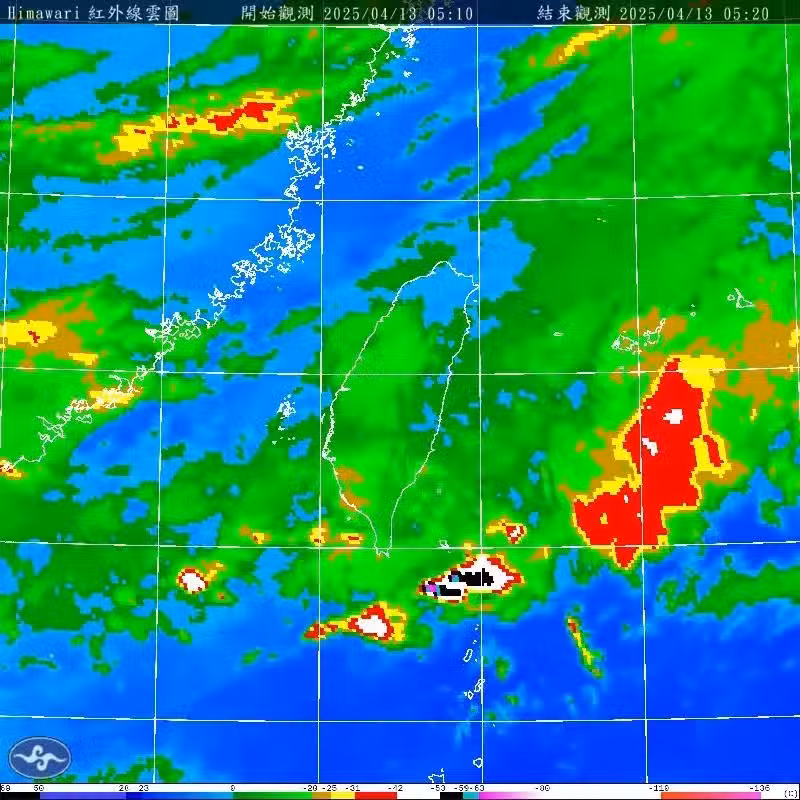 氣象署指出,鋒面通過,易有短延時強降雨,今日屏東、台東地區(含蘭嶼、綠島)及台中、南投、嘉義、高雄山區有局部大雨發生的機率,請注意雷擊及強陣風,低洼地區請慎防積水,山區注意坍方及落石。