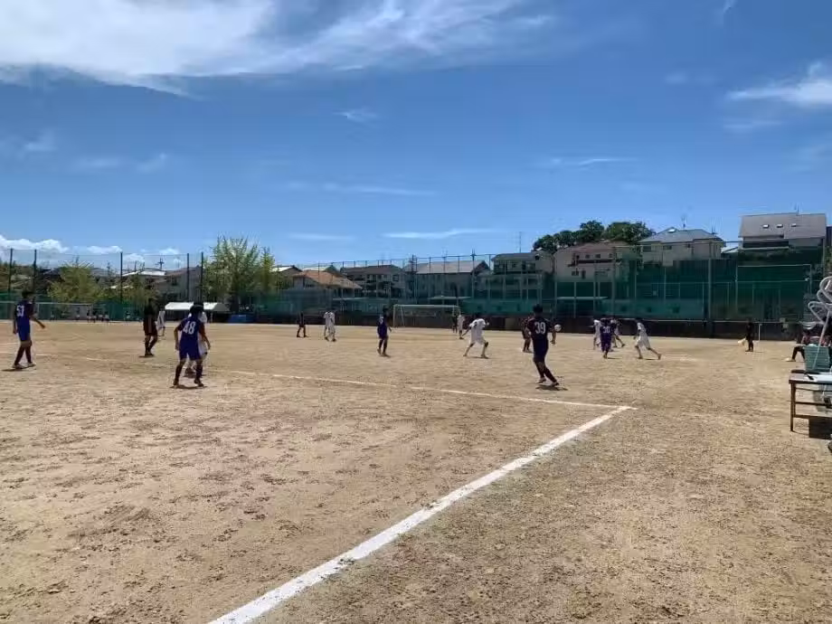 帝冢山學園學生在第二操場進行足球訓練的情景。(臉書照片)