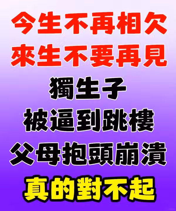 「今生不再相欠,來生不要再見…」這是兒子跳樓前留給他們的最後一句話…