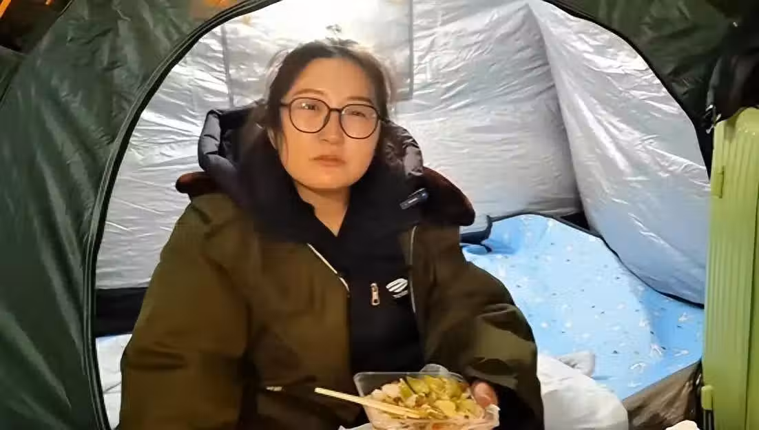 但要說她體面,她又沒有家,只有一個行李箱,一個帳篷,每天就在路邊搭帳篷睡覺。