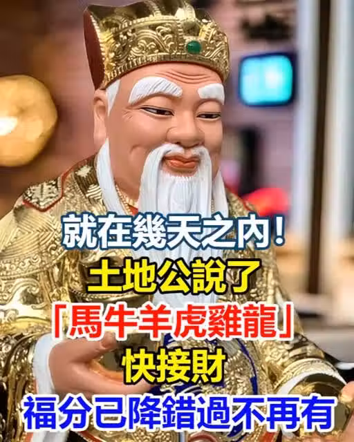 就在幾天之內!土地公說了「生肖馬牛羊虎雞龍」快來接財,福分已經降下來
