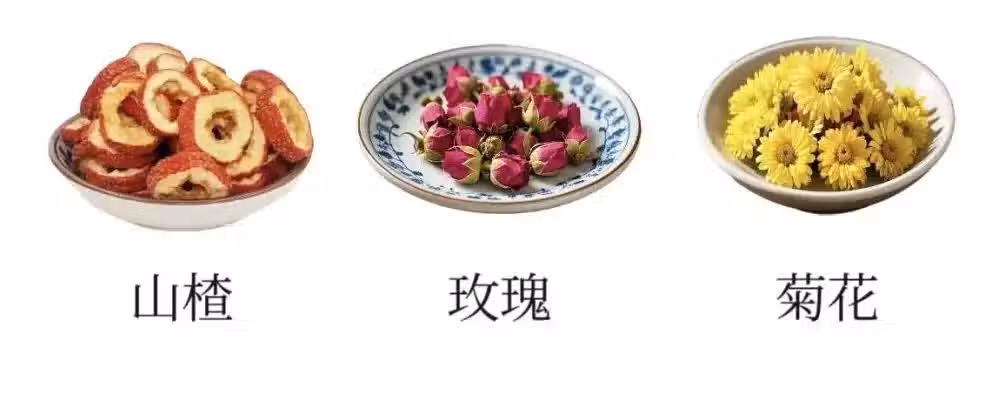 【做法】加適量水煮山楂10分鐘,沖泡菊花、玫瑰即可。