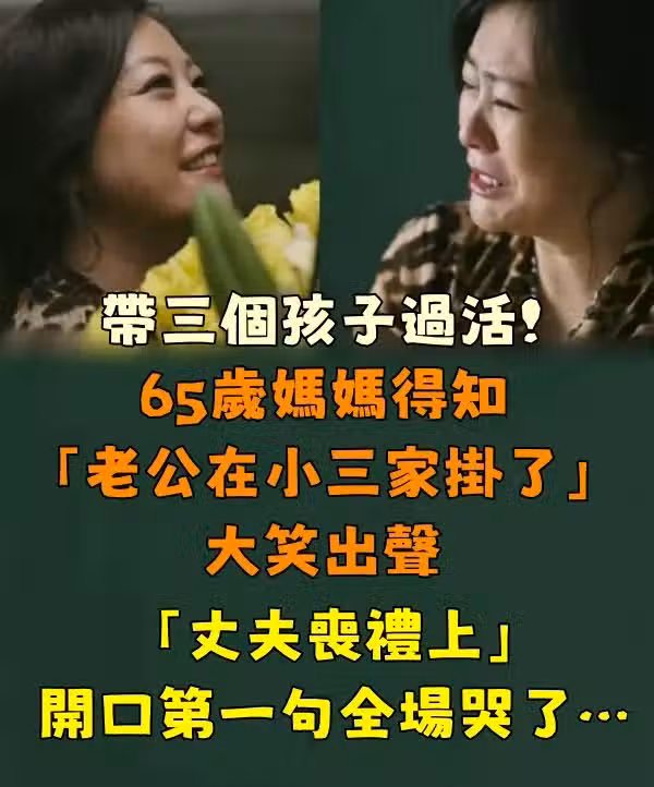 帶著三個孩子過活!65歲媽媽得知「老公在小三家掛了」大笑出聲 「在丈夫喪禮上」開口第一句全場哭了…