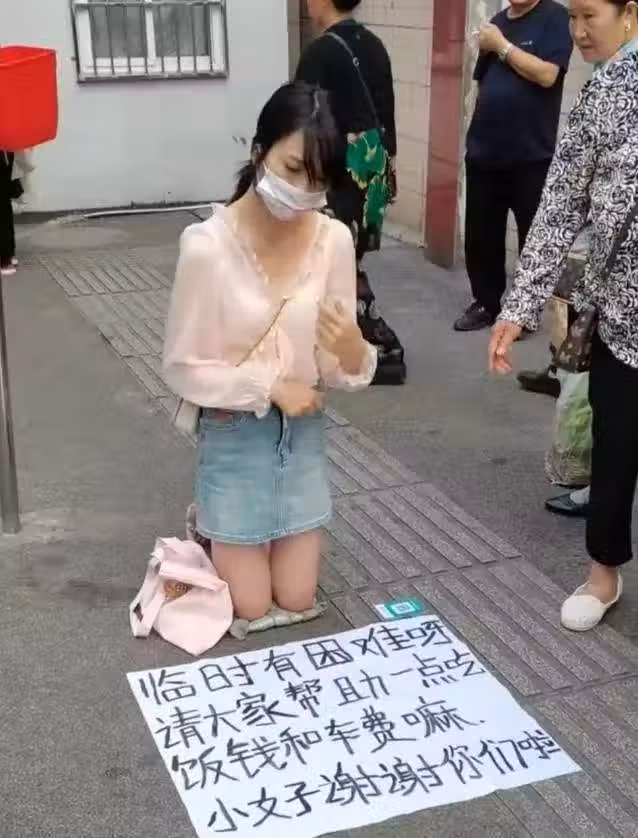 在街頭偶爾能看到一些街友身穿破爛的衣服,前方放著個碗來乞討,希望藉由這樣的方式來維持生計。然而日前在四川卻出現了一位年輕女孩跪地乞討,由於她穿著時尚乾淨,因此也讓大家困惑為何她做出這樣的舉動...