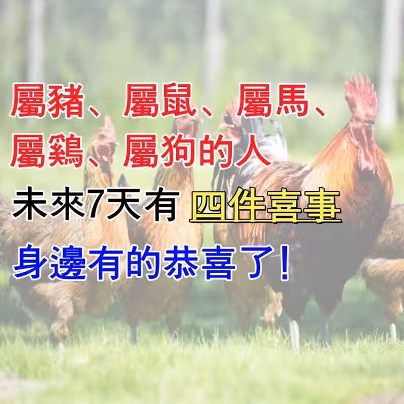 【屬豬、屬鼠、屬馬、屬雞、屬狗的人】未來7天有「四件喜事」身邊有的恭喜了