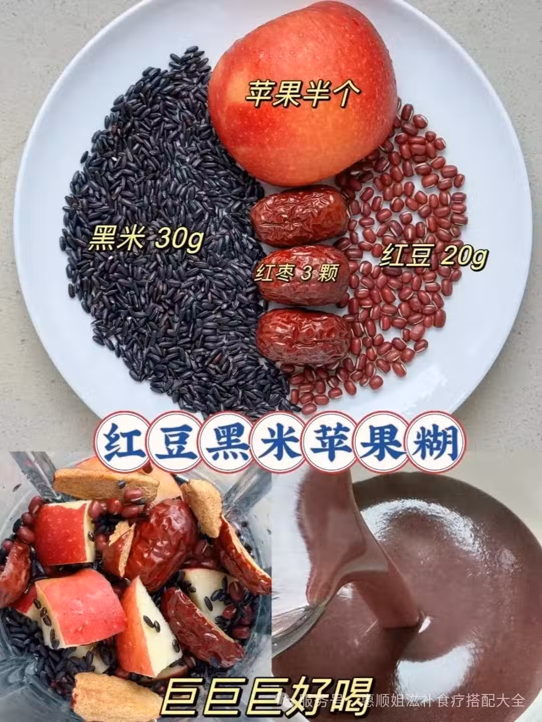 材料:紅豆20g +黑米30g+紅棗3+顆蘋果半個+水(破壁機水位600ml)