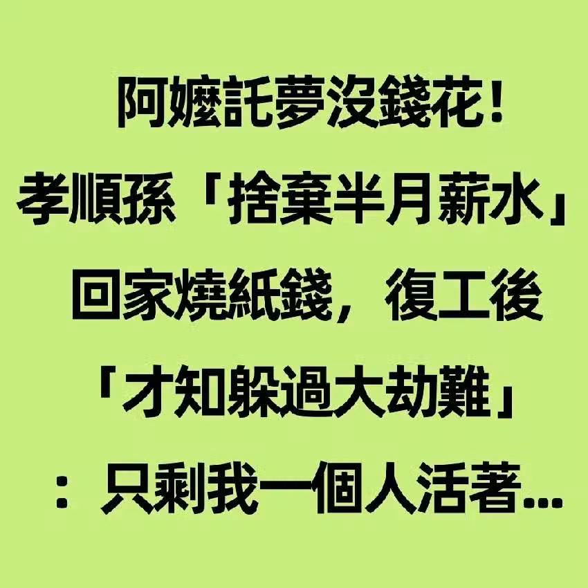 阿嬤託夢沒錢花!孝順孫「捨棄半月薪水」回家燒紙錢,復工後「才知躲過大劫難」:只剩我一個人活著...