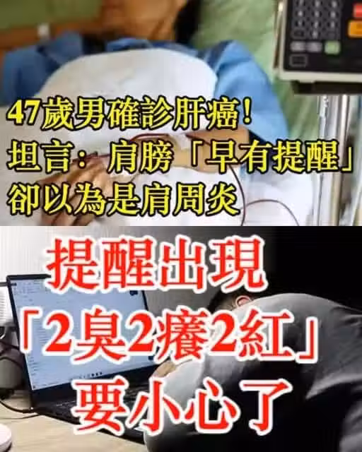 47歲男確診肝癌!坦言:肩膀「早有提醒」,卻以為是肩周炎 提醒出現「2臭2癢2紅」要小心了