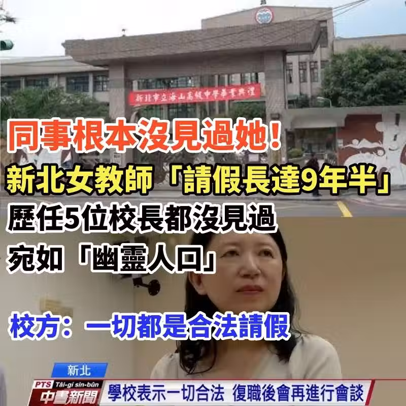 同事根本沒見過她!新北女教師「請假長達9年半」歷任5位校長都沒見過,宛如「幽靈人口」 校方:一切都是合法請假