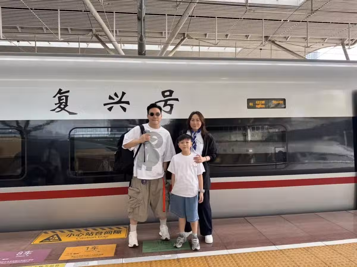 4月17日,蘇永康和老婆、兒子一起乘坐復興號高鐵前往內地城市邵陽旅遊,因為假期很多港人出遊,交通擁擠,所以他們一大早六點鐘就從香港的家裡出發了!