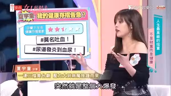 根據《ettoday星光雲》報導,甫與孫協志結婚一個月的夏宇童,近期在錄製節目時透露身體出現警訊。