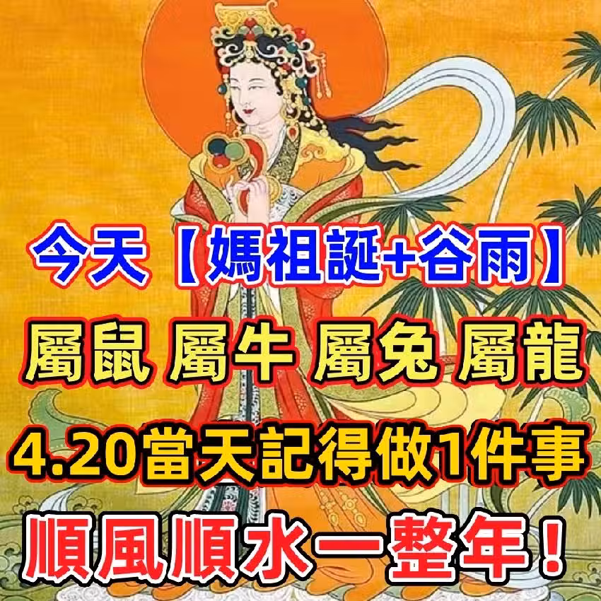 百年難得一見!【媽祖誕+穀雨】,生肖屬鼠、牛、兔、龍 4.20日當天記得做1事,順風順水一整年~