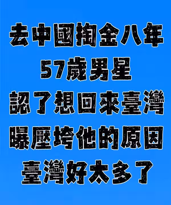 去中國掏金八年!57歲男星「認了想回來台灣」 曝壓垮他的原因:「台灣好太多了」