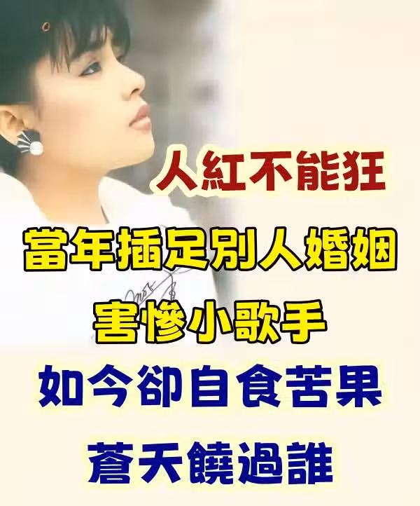 人紅不能狂,當年插足別人婚姻,害慘小歌手,如今卻自食苦果,蒼天饒過誰
