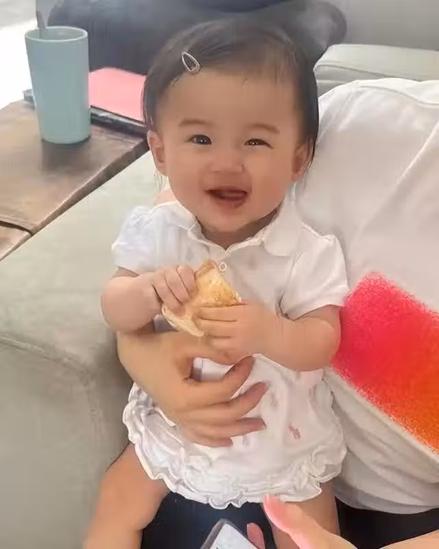 梁穎晨還透露,寶寶越來越愛「表演」,喜歡對著鏡頭擠眉弄眼,活脫脫一個小戲精。