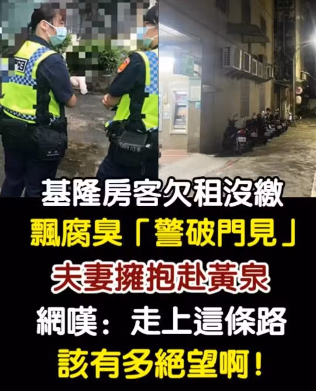 基隆房客欠租沒繳「飄腐臭」警破門見「夫妻擁抱赴黃泉」,網嘆:走上這條路該有多絕望啊!