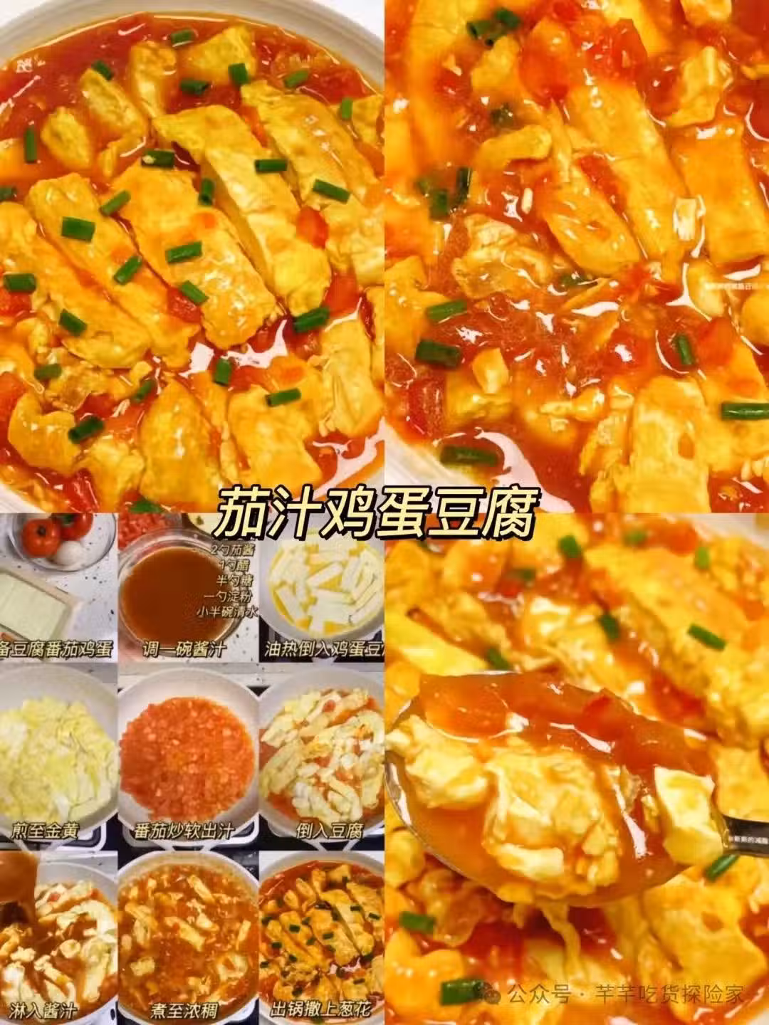 二、茄汁雞蛋豆腐,色香味俱全,酸甜的茄汁搭配嫩滑的豆腐和香軟的雞蛋,簡單快手,也很適合忙碌的日常。