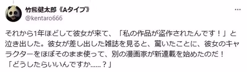 「她哭著問我:『我該怎麼辦……?』但老實說,我也不知道該怎麼幫她。因為她的作品從來沒在雜誌上發表過,屬於『未發表作品』,法律上很難證明對方是抄襲。那時我還從來沒聽過,有編輯會偷新人投稿作品的情況,何況我在那家出版社也沒有認識的人。」