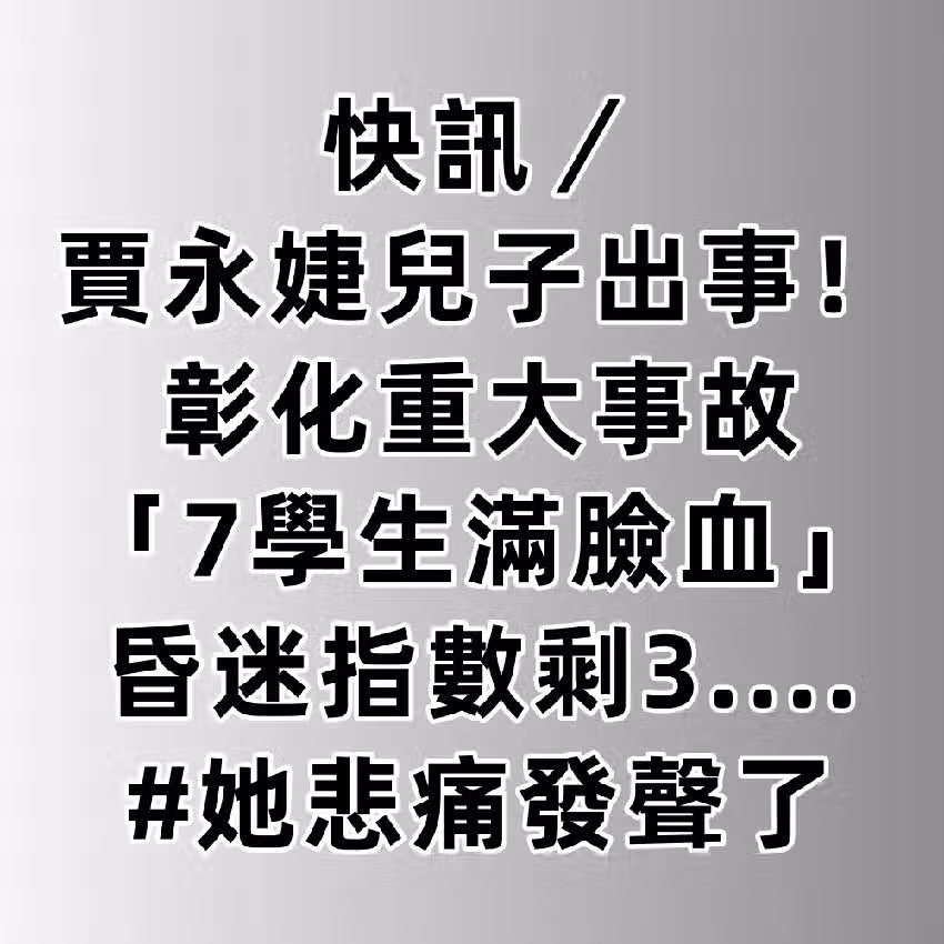 快訊/賈永婕兒子出事!彰化重大事故「7學生滿臉血」昏迷指數剩3.... #她悲痛發聲了