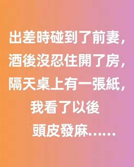 出差時碰到了前妻,酒後沒忍住開了房,隔天桌上有一張紙,我看了以後頭皮發麻!!
