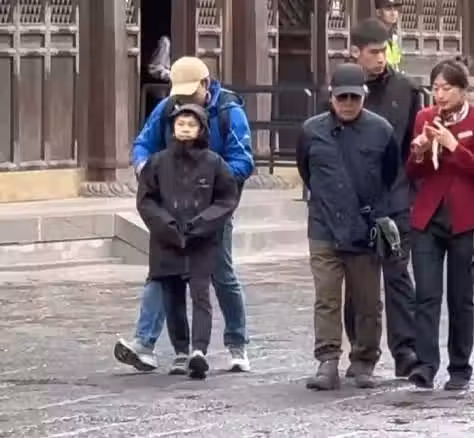 當時兩個女兒陪在母親郭晶晶的身旁,兒子霍中曦和爺爺還有爸爸霍啟剛走在一起,家人一起同行,霍老爺子認真聽講解員講解。