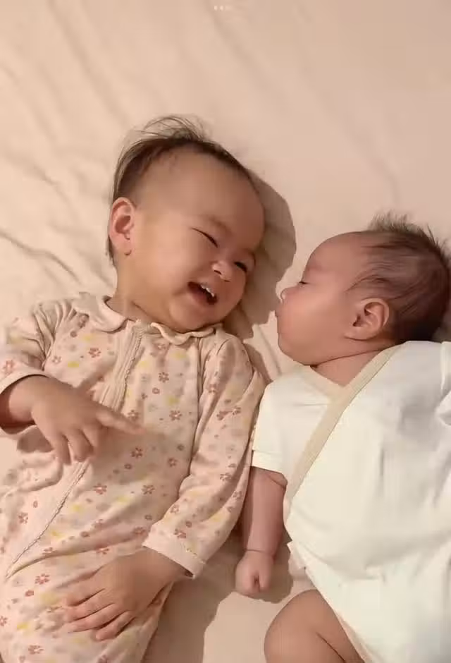 期間朱慧敏的大女兒還嘗試去親吻弟弟,看著兩個小傢伙這麼可愛,想來作為媽媽的朱慧敏心都被融化了。