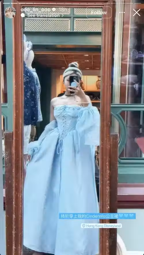 ▲林倩換上灰姑娘裝扮,明顯違反迪士尼樂園規範。(圖/林倩IG)