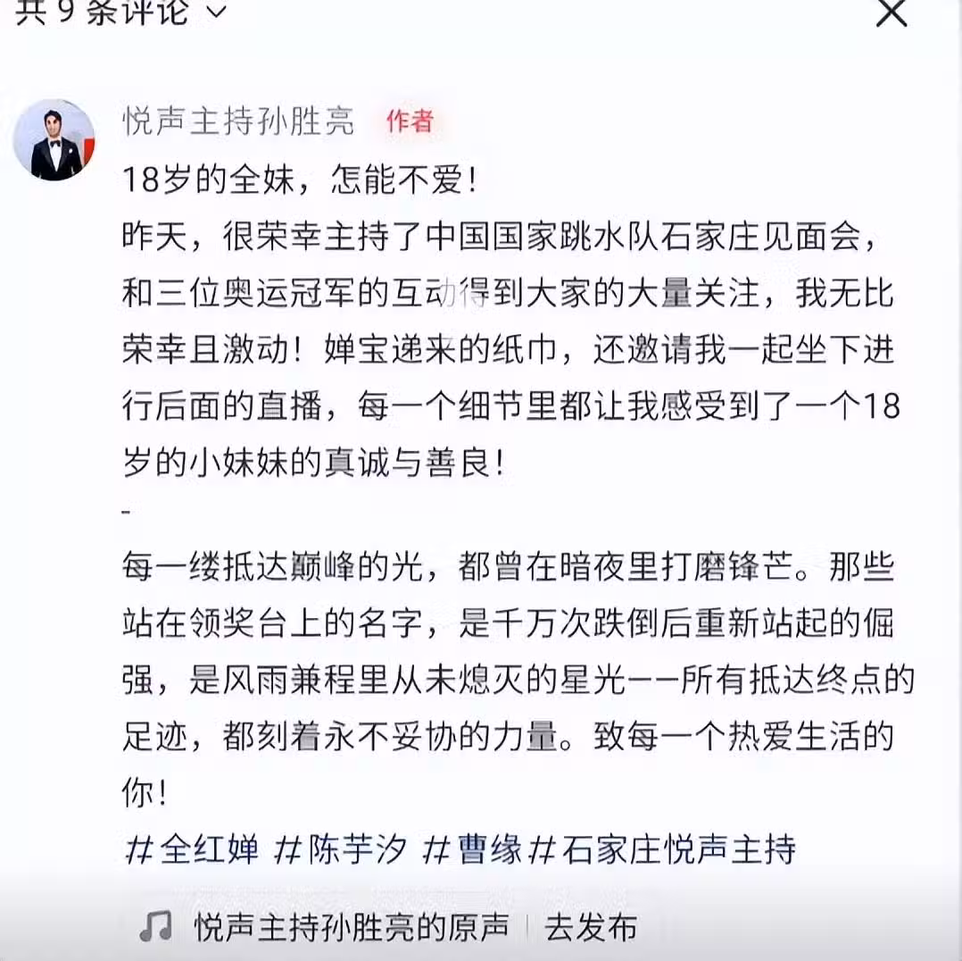無緣冠軍一周,全紅嬋凌晨發文暴露真實現況,父親的擔心應驗了